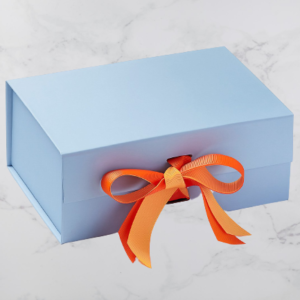 The ribbon isn’t permanently fixed to the box, so you can add a different ribbon colour or decorative closure.