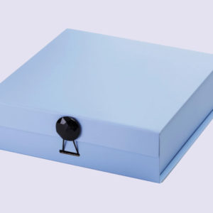 Created here at Rigid Custom Boxes, our rigid grey opal sooth dome gift box closure goes perfect with slot boxes. They offer a smooth glossy surface, something that further enhances the beauty of your box.