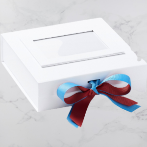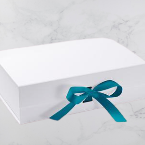 Add a different colour ribbon to gift boxes to match your brand. Create unique and distinctive gift packaging solutions that stand out from the crowd. Gift boxes also look great doubled up with the supplied gift box ribbon and an additional colour.