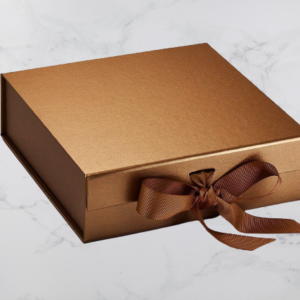 The elegant gold grosgrain ribbon boosts the look of your packaging boxes. They’re usually used with black, ivory, bronze, copper, white, or gold foil logo boxes. They can fit all our boxes with changeable ribbon slots.