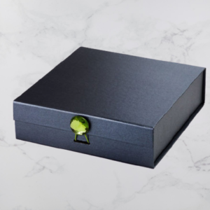 Luxury peridot gemstone gift box closure can increase the beauty of your slot gift box. Order today from Rigid Custom Boxes and get quick shipping for your order.