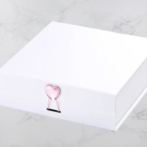Our rigid rose quartz heart gemstone gift box closure can further enhance the beauty of your slot gift boxes. At Rigid Custom Boxes USA, we produce high-quality closures that are unbreakable.