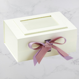 Our bespoke Silver A4 Deep gift boxes with changeable ribbon are made with rigid 1200-micron board. They made for attractive packaging for skincare, beauty and food products.