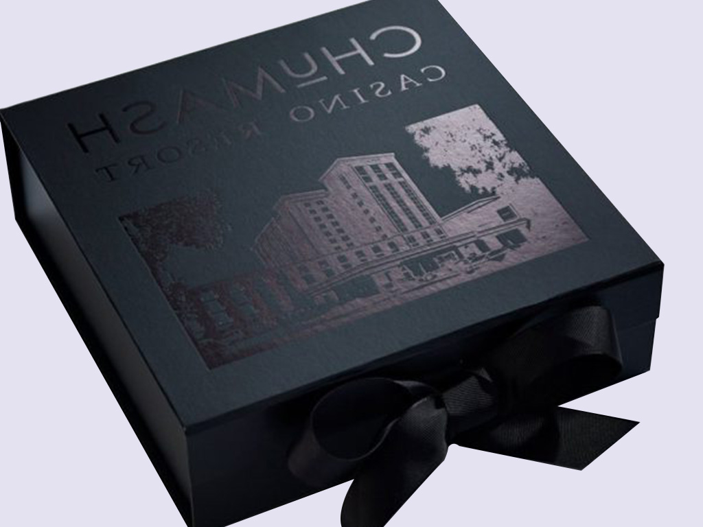 - Easily assembled into a rigid box with a front closure flap and a pre-fitted ribbon enhancing its beauty.