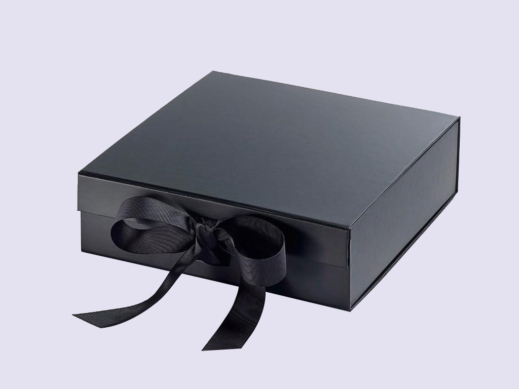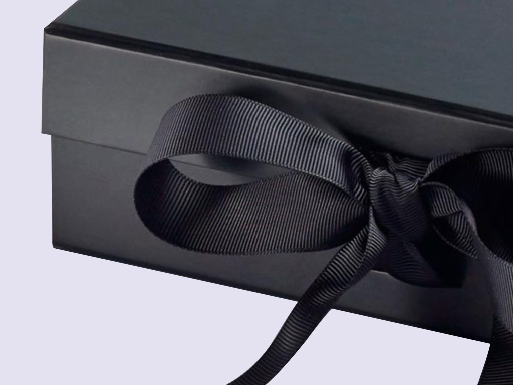 Black Medium Gift Boxes with fixed grosgrain ribbon