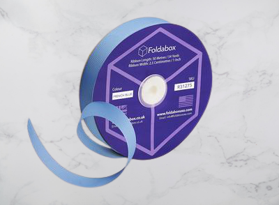 Compliment your gift packaging beautifully with these French light blue grosgrain ribbons. Usually, they go with black, silver, ivory, and Kraft boxes.
