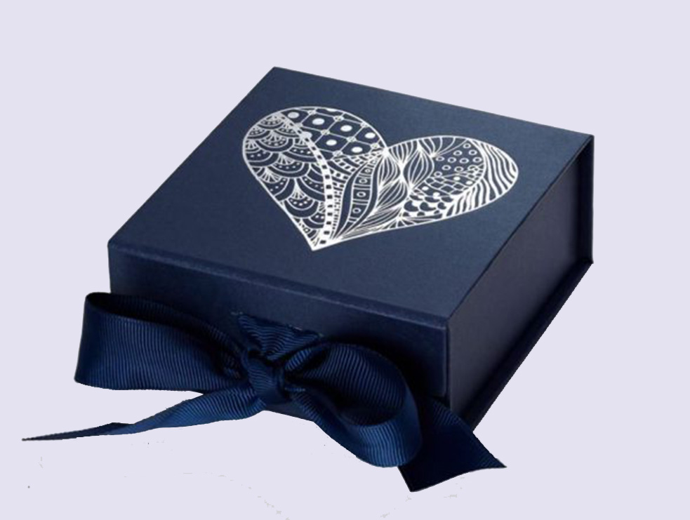 Luxury custom navy blue gift boxes with stunning grosgrain ribbon are among our most lavish collection of gift boxes at Rigid Custom Boxes. These boxes are known for their sophisticate designs, smooth textures and lavish finishing. You can effectively utilize these bespoke navy blue boxes with grosgrain ribbon for a number of commercial as well as personal use.