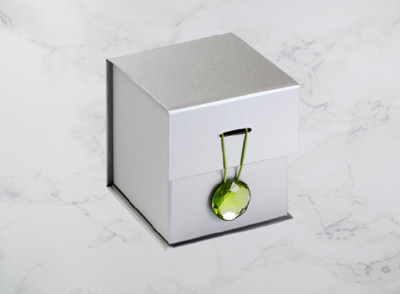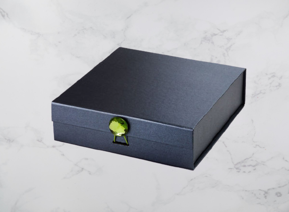 Luxury peridot gemstone gift box closure can increase the beauty of your slot gift box. Order today from Rigid Custom Boxes and get quick shipping for your order.
