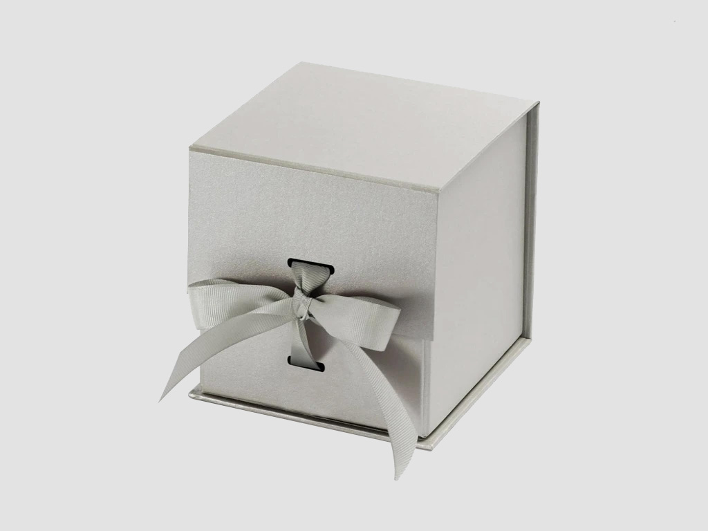 Customized Silver Large Cube Gift Boxes with Changeable Ribbon at Pocket Friendly Rates