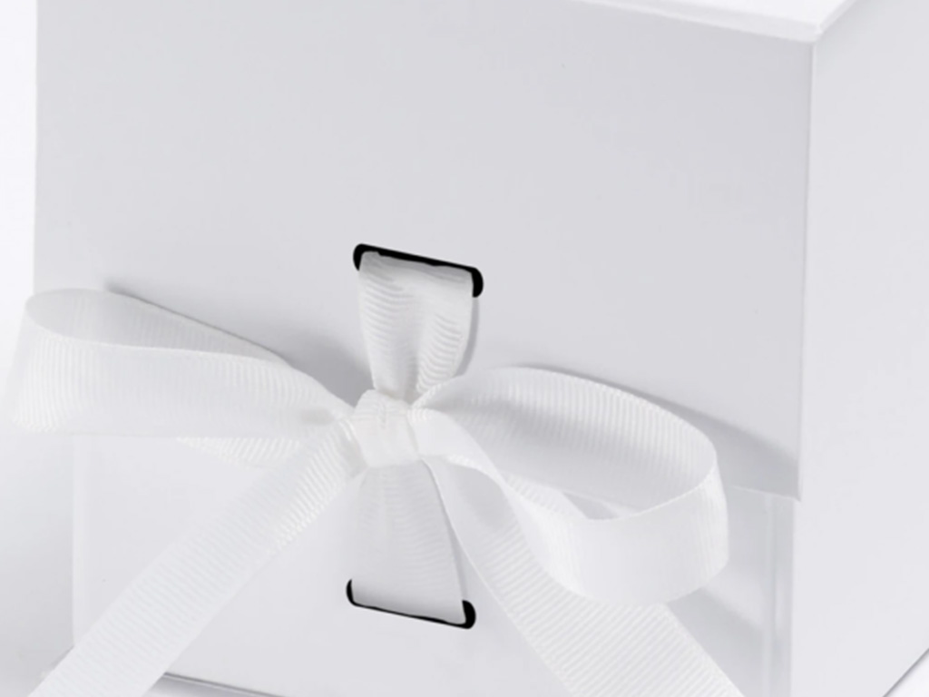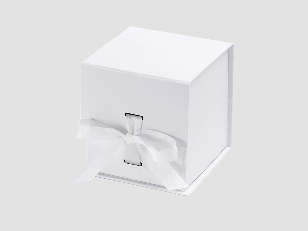 We provide luxury bespoke White Large Cube Gift Boxes with changeable ribbon at the lowest rates. Our team here at Rigid Custom Boxes can fulfill all your packaging needs. These rigid custom White Large Cube Gift boxes changeable ribbon is perfect for products such as cosmetic items, candles, soaps, and much more.
