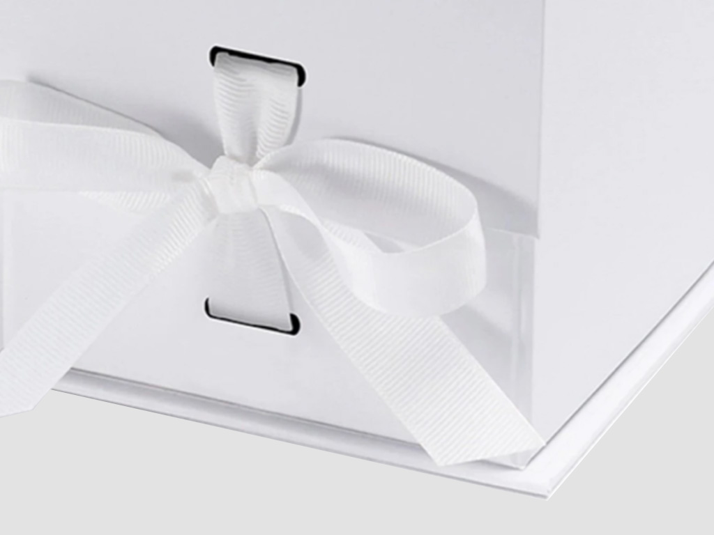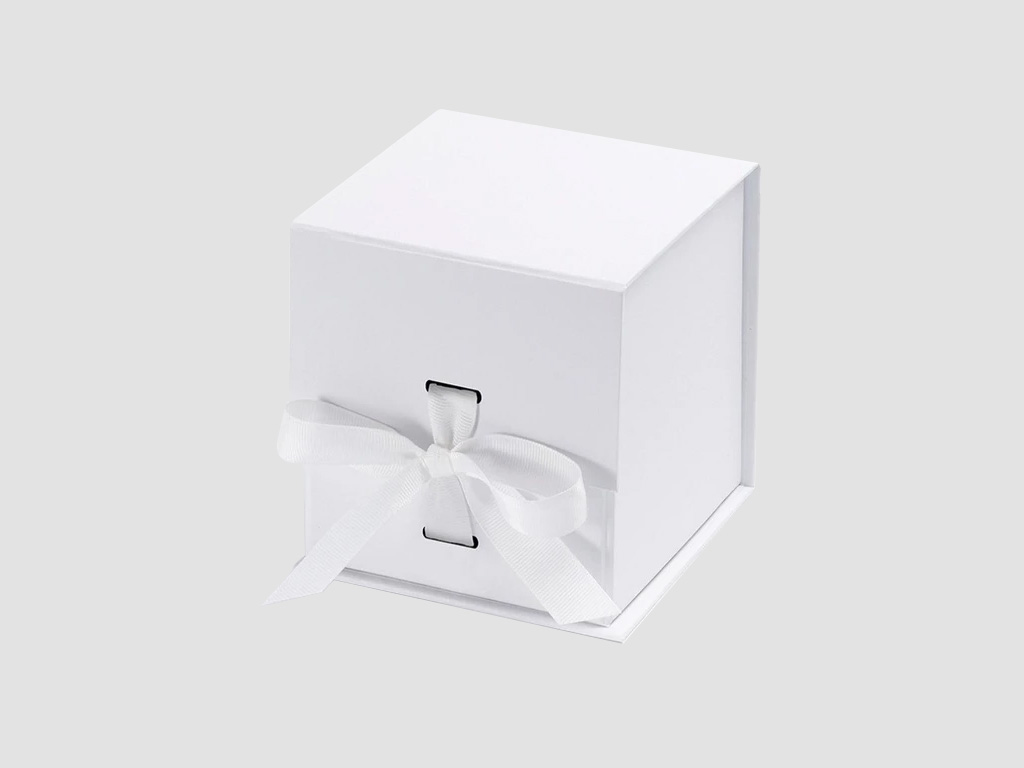 White Small Cube Gift Boxes with changeable ribbon